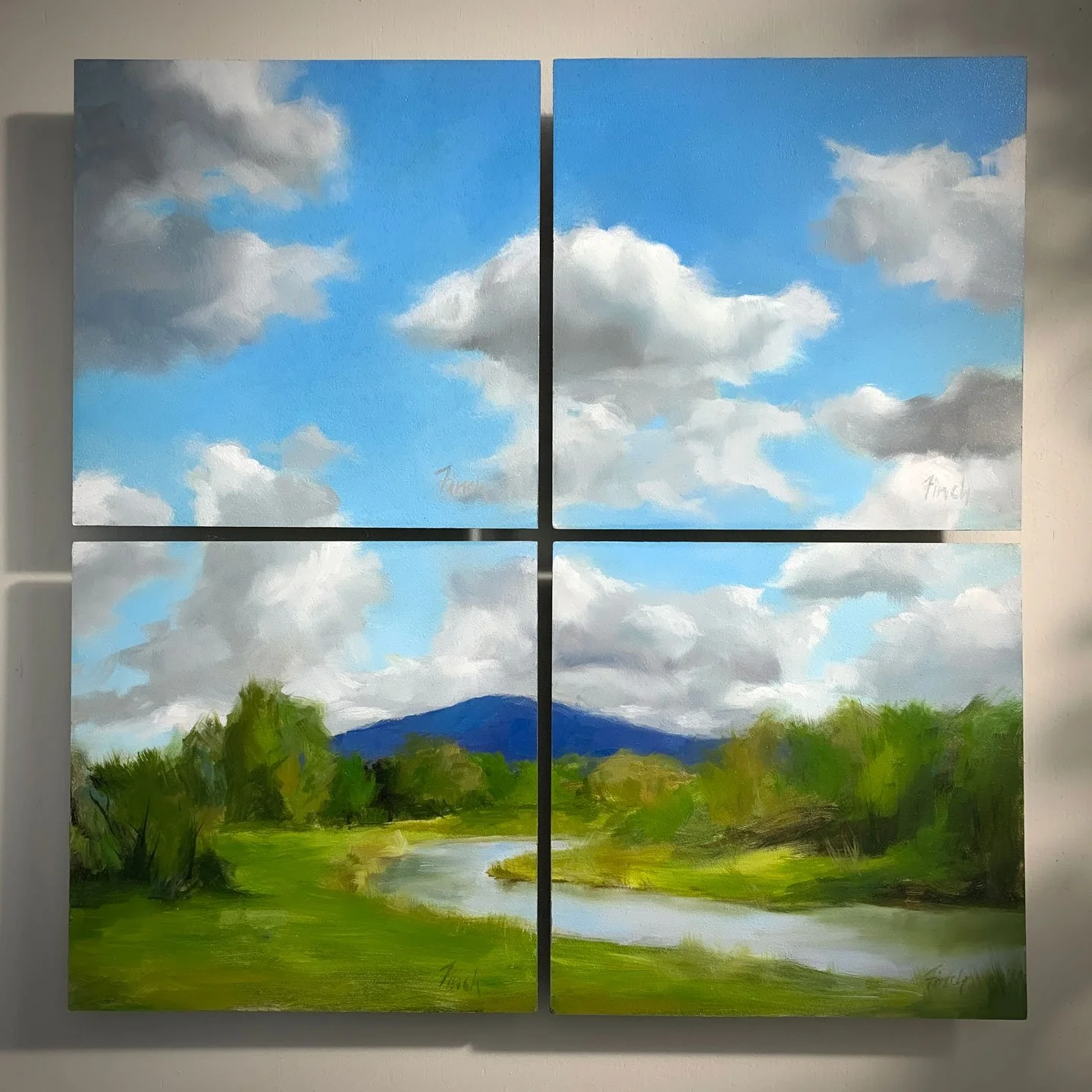 Upstate Splendor is a grouping of four paintings that features one of my favorite views in Upstate New York. As I drive by almost every week in every weather type and season, I enjoy this ever changing view of our hills, vegetation and a winding river.